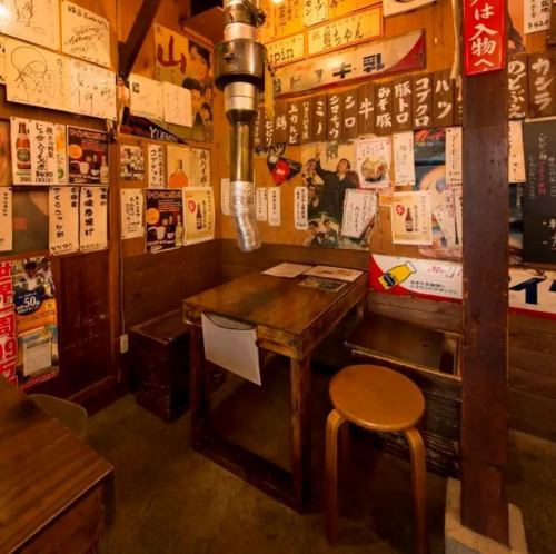 店內的裝潢靈感來自美好的昭和時代,到處都貼滿了海報,營造出懷舊的氛圍。1人也可輕鬆入場,最多可預約20人。座椅配有通風管道,不用擔心有異味。陳舊的桌椅很舒服◎與心愛的人在輕鬆的氛圍中享用美食★
